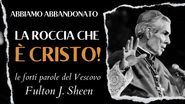 «CI SIAMO ALLONTANATI DAGLI INSEGNAMENTI DI CRISTO ADOTTANDO QUELLI DEL MONDO. Non ci chiediamo più: “Questo piacerà a Cristo?” ma: “Questo piacerà al mondo?” (…). Noi sposiamo questo mondo e diventiamo vedovi del mondo futuro. Adottiamo il suo modo di esprimersi, i suoi esempi e le sue tendenze. Ecco una delle ragioni di tanta instabilità nella Chiesa di oggi: la sabbia su cui camminiamo è mobile. Abbiamo abbandonato la Roccia che è Cristo» (Venerabile Fulton J. Sheen).