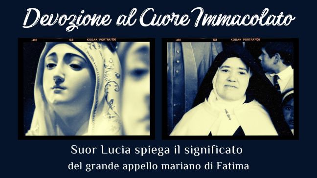 Dopo aver visto come il Cuore Immacolato stia davvero al centro di Fatima, del suo messaggio, delle sue richieste e delle sue promesse, mi sembrano opportune alcune considerazioni per chiarire come la richiesta della “Devozione al Cuore Immacolato” non significhi qualcosa di diverso di “Consacrazione” al Cuore Immacolato. Sono, in realtà, come due sinonimi ma con delle sfumature da cogliere. La devozione al Cuore Immacolato possiede una “triplice dimensione”, che diventa, sul piano pratico, un triplice impegno di amore nei confronti di Maria: “venerazione”, “riparazione”, “consacrazione”. Continua...