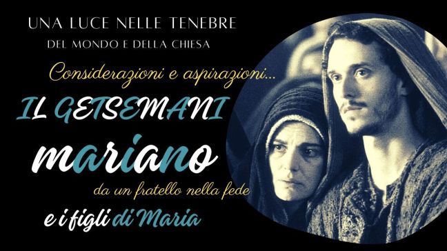 Premessa Taluni potrebbero "incriminare" questo scritto per non spiegare, chiarire, esporre tematicamente punti e spunti appena accennati e solo introdotti sulla scena, come il fanciullo che lancia il sasso e nasconde la mano. Accolgo benevolmente l’obiezione. In realtà è esattamente così. Sapete, nella fede non tutto è trattazione tematica, sistematica, teologica o istruzione catechetica, benché … Continua a leggere Una luce nelle tenebre: il “GETSEMANI MARIANO” e i figli di Maria