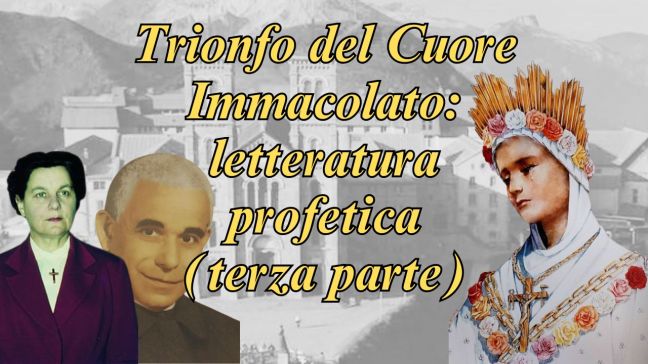 Ma allora come va inteso questo Trionfo? Dalla lettura comparata di molte rivelazioni private autorevoli, sembra risultare che Gesù, per mezzo del Cuore Immacolato di Maria, porterà a compimento il suo disegno intervenendo nel mondo in maniera diretta, in due modi: sa una parte come Giudice e, dall’altra, attraverso una nuova e potente effusione dello Spirito Santo. Continua...