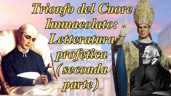 Dopo le precisazioni di ordine teologico è mia intenzione presentare, in una serie di articoli, una corposa rassegna di testimonianze profetiche sull’avvento del regno di Maria e sulle sue caratteristiche. Grazie ad esse si può rinsaldare la fede in questa divina promessa mostrando che esiste un plurisecolare carisma profetico suscitato da Dio che garantisce che … Continua a leggere 05_Trionfo del Cuore Immacolato: letteratura profetica (prima parte)