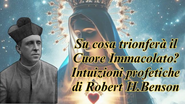 È palese, è sotto gli occhi di tutti la presenza di una crisi epocale che non ha avuto precedenti in altre epoche storiche. Quello che stiamo vivendo a partire dalla Rivoluzione francese nella nostra Europa – e più in generale nell’intero mondo – e che trova la sua apoteosi nel nostro tempo, nei nostri anni, nella nostra società mondiale ed ecclesiale, è quanto Robert Hugh Benson († 1914), noto scrittore inglese anglicano convertito al Cattolicesimo definì nel suo romanzo-capolavoro sull’Anticristo Il Padrone del mondo (1907) con l’espressione « religione umanitaria », ovvero l’umanità che adora se stessa al posto di Dio. Su questa, di certo, il Cuore Immacolato dovrà trionfare, soppiantando definitivamente e perentoriamente questa struttura diabolica che si è andata pian piano a costituire sulla terra nel corso dei secoli, soprattutto durante gli ultimi due!